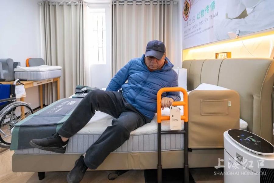 生活館運營方相關負責人介紹,生活館作爲集體驗展示、服務集成、產業聯動、政策落地於一體的綜合性平臺,將積極打造長者身邊的“幸福驛站”、銀髮產業的“創新窗口”和宜居城區的“溫暖名片”。也因此,該館的最大特點是“沉浸式體驗”。以一樓爲例,這裏有輔具、老人鞋等康養產品的展示銷售,也有涵蓋客廳、衛生間、廚房間等適老化改造樣板間。“顧客挑選完心儀的康養產品後,可以直接到樣板間試用,相當於代入生活場景體驗。”