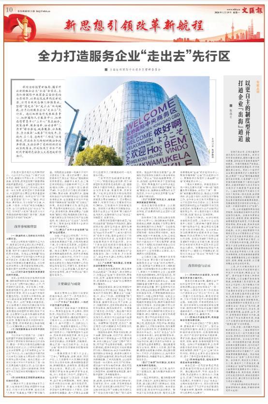 面對全球經貿新格局、國家開放新戰略和企業“出海”新需求,上海虹橋國際中央商務區堅持黨的全面領導,以開放促改革構築新優勢,運用系統觀念強化舉措集成,堅持“引進來”和“走出去”雙向賦能,全力打造服務企業“走出去”先行區。通過虹橋海外發展服務中心、虹橋國際人才服務中心、虹橋海外貿易中心“三中心”集成融合,政策清單、服務清單、活動清單“三清單”精準推送,政務服務、公共服務、專業服務“三服務”同向發力,區域內、長三角、海內外“三維度”協同聯動,形成體系化的創新做法和改革舉措,生動詮釋了黨的創新理論的實踐偉力,深刻體現了習近平新時代中國特色社會主義思想的科學指引。