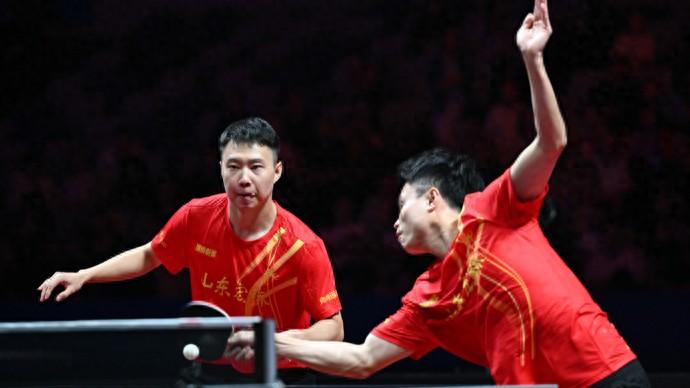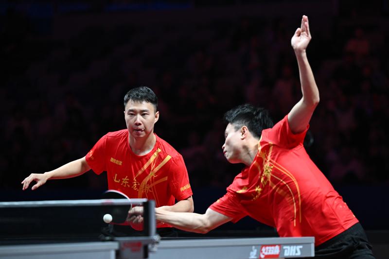 去年9月,於子洋/周啓豪代表山東魏橋隊參加乒超第三階段男子團體比賽(新華社)