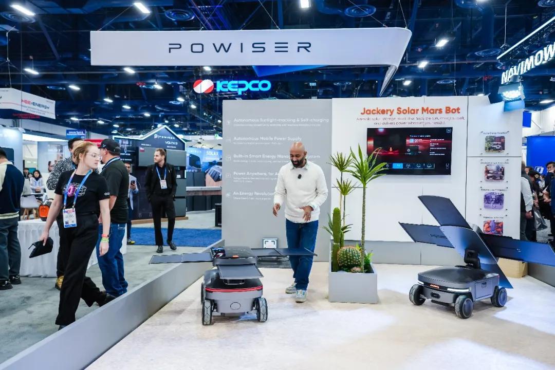 CES 2026展上,華寶新能展示了全球首款光充儲一體化智能機器人,這款光儲火星機器人頂部搭載可摺疊柔性光伏板,具備向日葵般的智能追光功能,實時追蹤光照角度以最大化太陽能轉化效率;機器人內置AI視覺導航系統與避障算法,可自主在庭院、戶外空間移動並精準規避障礙物,實現無人化自主作業;核心儲能與調度模塊,能智能平衡“發電-儲能-供電”全鏈路,實現能源高效流轉。
