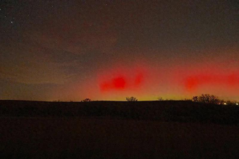 △當地時間2025年11月12日,美國堪薩斯州科頓伍德福爾斯,地磁暴引發北極光現象。