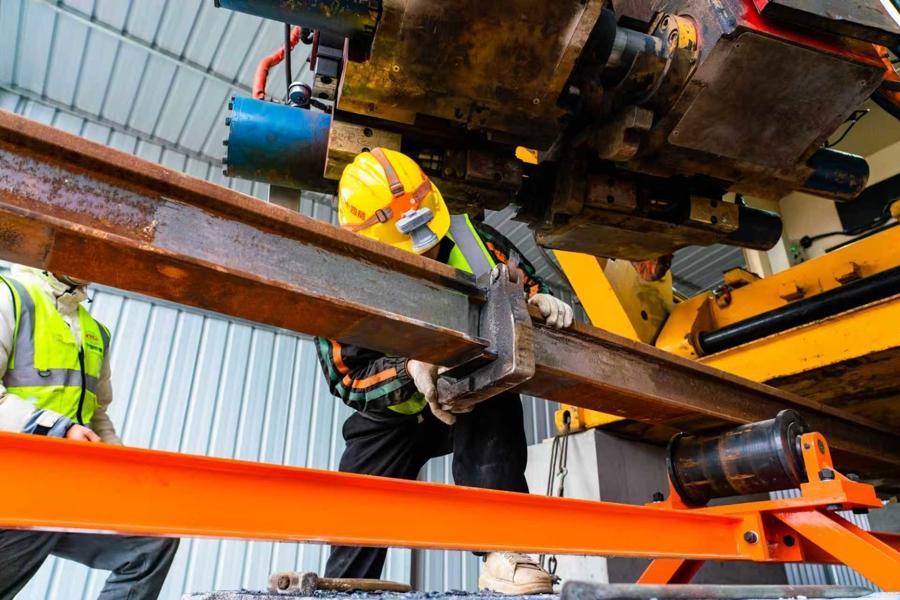 每一根125米的無縫長軌,都要經歷配軌、校直、除鏽、焊接、正火、冷卻、精磨、探傷等11道精密工序,以確保市域線列車在軌道上平穩行駛,提升市民乘客的乘車體驗和舒適度。