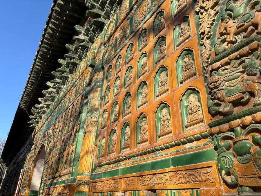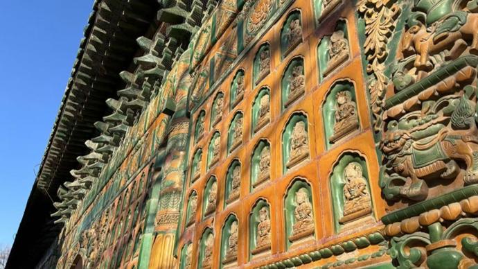 琉璃閣立面鑲嵌1424尊無量壽佛琉璃像。