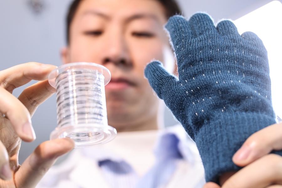 基於“纖維芯片”,無需外接處理器,可直接編織構建柔軟、透氣的全柔性電子織物系統。
