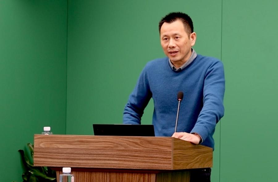 中國科學院院士、復旦大學纖維電子材料與器件研究院/高分子科學系教授、論文通訊作者彭慧勝在發佈會現場發言。