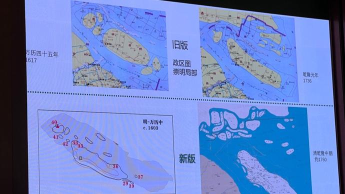 上海師範大學歷史系副教授林宏、上海社科院歷史研究所研究員牟振宇等通過各自負責的專題圖部分,包括崇明島圖組、租界圖組等,對崇明島的自然地理變遷、上海租界空間演變的情況作了具體介紹。