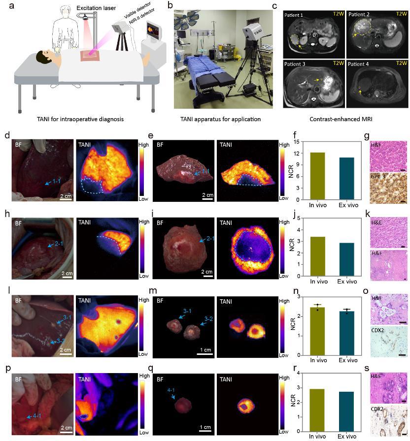 TANI技術光路示意圖及其用於牀邊可視化肝惡性腫瘤的工作流程圖