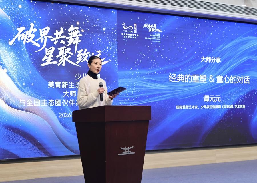 1月23日,“大師之約:少兒舞劇美育新生態研討會”在滬舉行,會上首發了少兒版芭蕾舞劇《天鵝湖》和大型舞蹈詩《我的祖國》(少兒版)。這兩部作品分別由譚元元、朱潔靜擔任藝術總監。主辦方還揭曉了今年7月將舉行的“上海青少年國際舞蹈展演”計劃,預示着2026年成爲充滿活力的舞蹈之年。