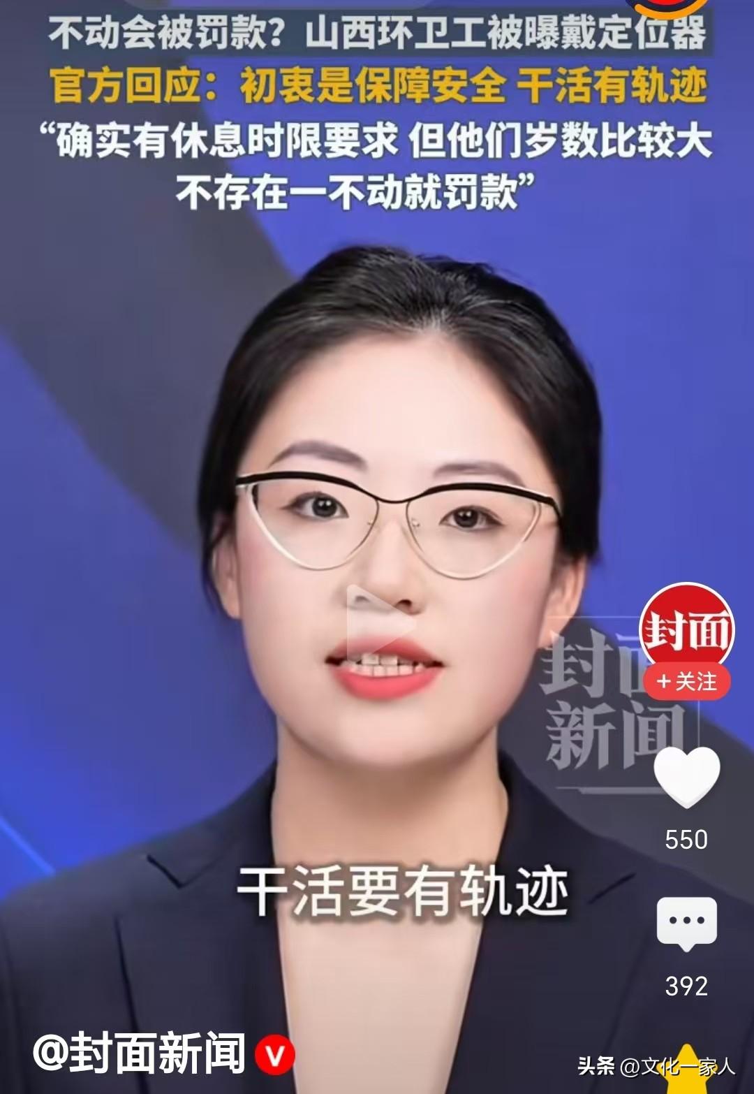 幹活要有軌跡,休息不能超過時長。戴電子工牌的目地不是罰款,而是爲了保障環衛工安全。