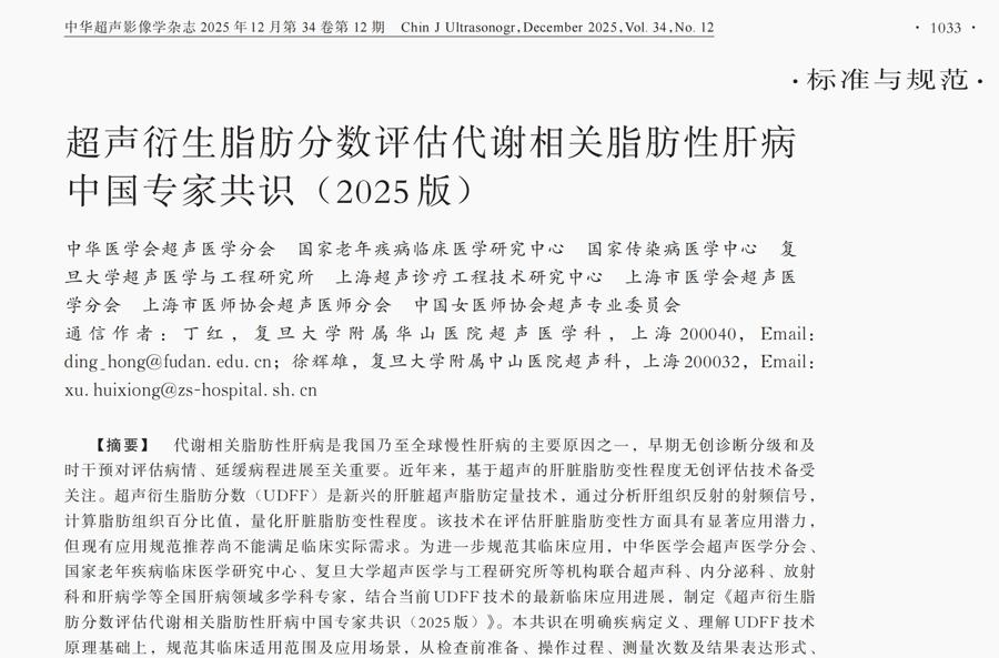 該共識於2025年12月發表於《中華超聲影像學雜誌》《臨牀超聲醫學雜誌》,丁紅教授、徐輝雄教授爲共同通訊作者,華山醫院薛立雲和中山醫院朱宇莉主治醫師爲第一執筆人。