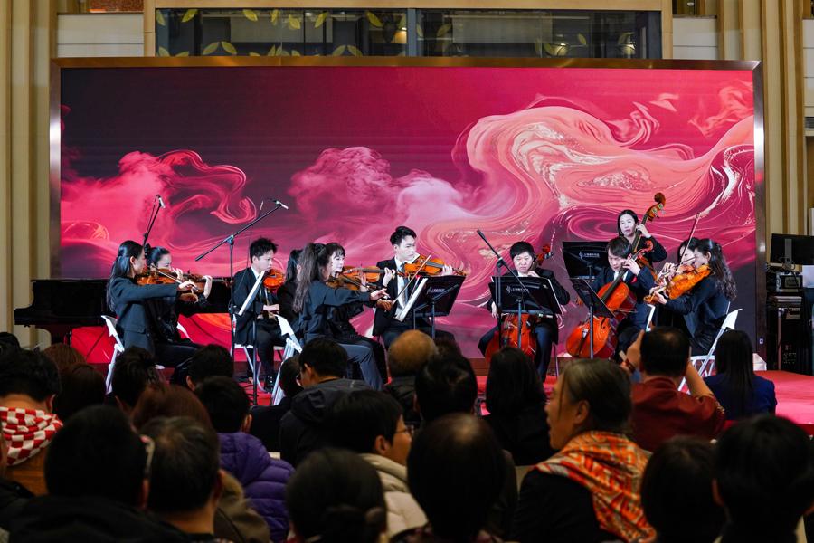 商圈裏的氛圍,讓樂手們對演出做了溫柔的適配。“音樂廳是‘深談’,這裏更像‘親切的招手’。”吳敏喆說,樂手們沒有降低藝術標準,卻讓音色多了彈性,“句子的呼吸更舒展,強弱對比更靈活,讓旋律在開放空間裏自然淌開。”