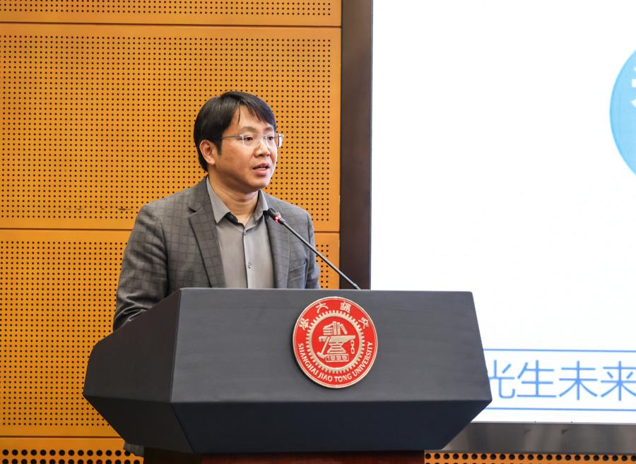 圖爲上海交通大學集成電路學院特聘教授、光子傳輸與通信全國重點實驗室副主任義理林在發佈現場進行演講與演示。