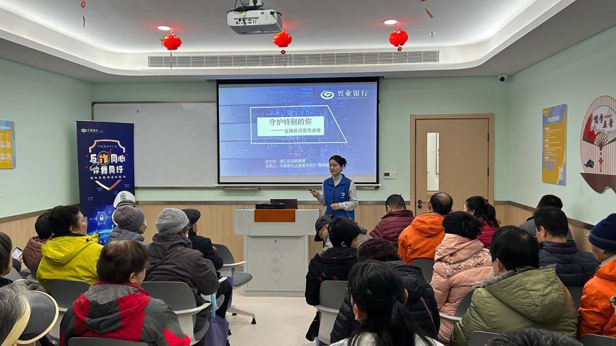 近日,興業銀行上海龍華支行的“藍馬甲”志願者服務隊走進徐彙區田林街道“陽光家園”,爲這裏的居民們帶來了一堂別開生面、充滿溫度的金融反詐知識講座。