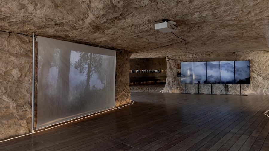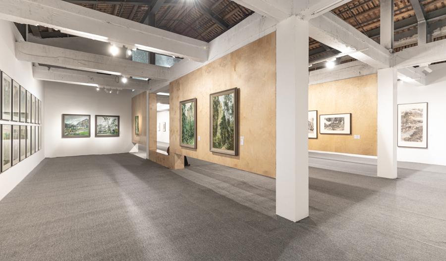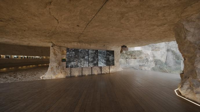 本次展覽第一板塊“海風潮信”位於靈峯景區林曦明藝術館內,該板塊聚焦於繪畫語言的當代演進,集中呈現中國畫、油畫、水彩及版畫等形式的創作,並融入書法、影像與雕塑作品,形成多媒介的敘事交響。該板塊線索始於對歷史的回望——開篇特別呈現了上世紀五六十年代潘天壽、顧坤伯、吳茀之、陸儼少等中國美術學院老藝術家深入雁蕩採風感悟的經典之作。第二板塊“山風耕骨”坐落於方洞景區的雲端拾光巖洞,以影像藝術爲核心呈現形式。來自中國美術學院跨媒體藝術學院的青年創作者以鏡頭爲犁,深入岩層肌理,與亙古山風展開一場關於時間的視覺對談。