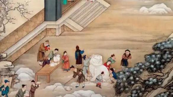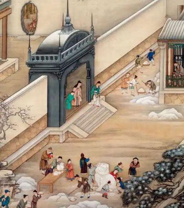 雍正十二月行樂圖軸之臘月賞雪(局部)