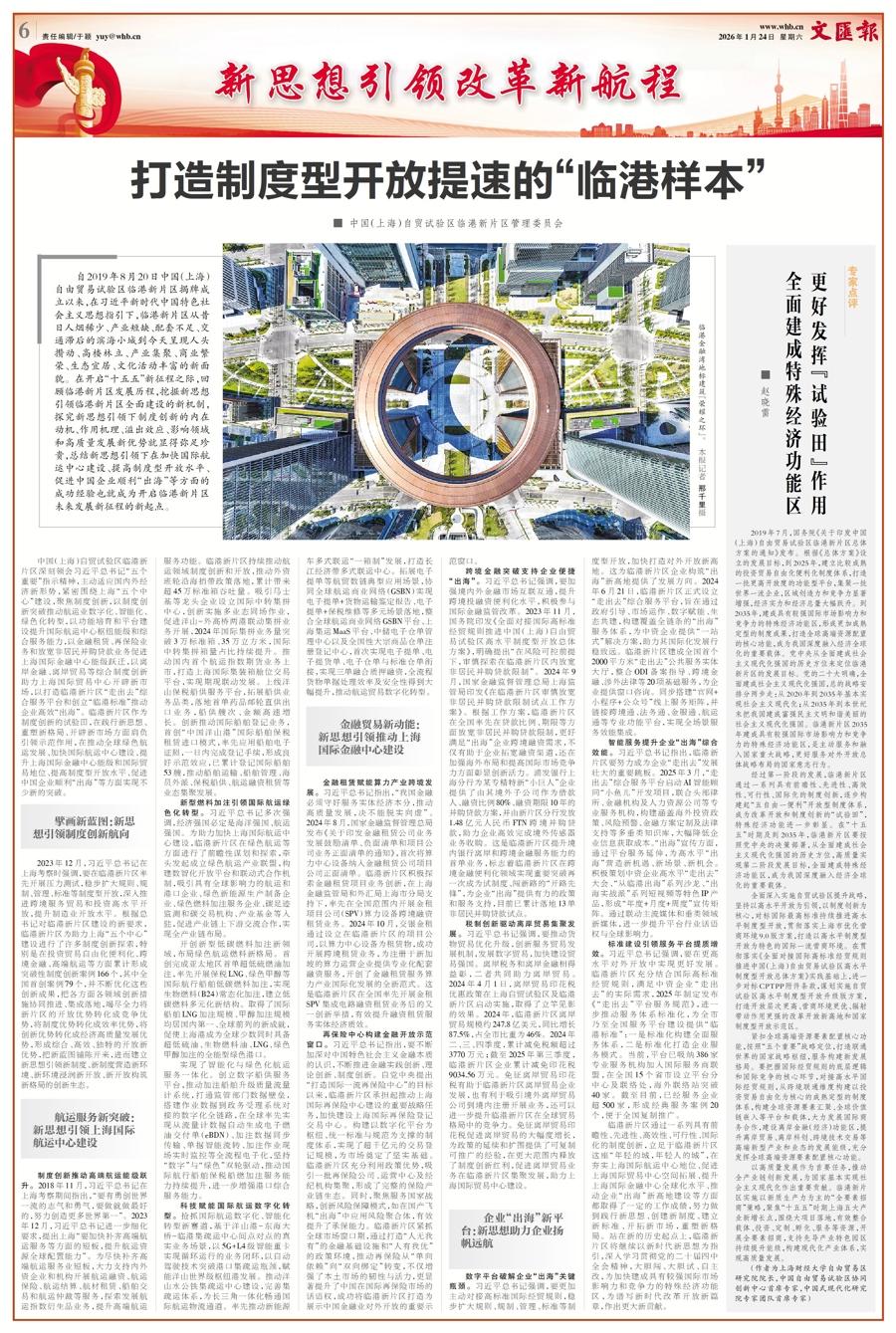 臨港新片區通過一系列具有前瞻性、先進性、高效性、可行性、國際化的制度創新,立足於臨港新片區這座“年輕的城,年輕人的城”,在夯實上海國際航運中心地位、促進上海國際貿易中心空間拓展、提升上海國際金融中心全球化水平、推動企業“出海”新高地建設等方面都取得了一定的工作成績,努力做到踐行新思想、創建新制度、建立新標準、開拓新市場,重塑新格局。站在新的歷史起點上,臨港新片區將繼續以新時代新思想爲指引,深入學習貫徹黨的二十屆四中全會精神,大膽闖、大膽試、自主改,爲加快建成具有較強國際市場影響力和競爭力的特殊經濟功能區,爲譜寫新時代改革開放新篇章,作出更大新貢獻。