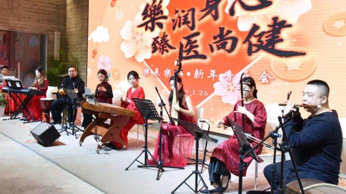 音樂會由海派融合樂隊“樂樂樂社”傾情演繹,在中醫導領、陸氏鍼灸療法代表性傳人、古箏演奏家陳超副主任醫師,導聆人、青年竹笛演奏家許任飛,出品人、青年揚琴演奏家章文婷等帶領下,以“四季流轉”爲脈絡展開與中醫四季養生相匹配的沉浸式演出。“春之章”《西湖春》《念・舊時》勾勒江南柔情與歲月回憶;“夏之章”《夏日皇宮》融合京韻與爵士,搭配夏季養生妙招,爲現場降溫透氣;“秋之章”《煙雨妝臺》《月夜萱花》交織古典秋思與溫情牽掛,秋季滋養錦囊同步分享;“冬之章”《月圓花好》傳遞暖意,全場大合唱《我的祖國》將氣氛推向高潮,生動詮釋“獨樂樂不如衆樂樂”的理念。互動環節中,觀衆用紅色記號筆手繪“小紅花”,致敬過往、期許新年;返場曲《送別》響起,手機閃光燈匯成星海,讓溫暖在旋律中流淌。