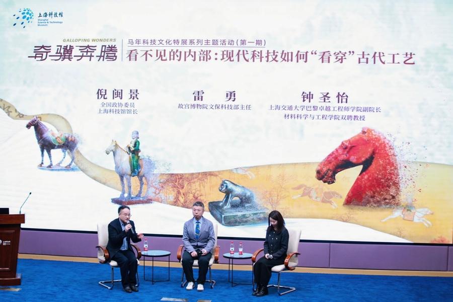 日前在上海科技館與故宮博物院聯合推出的“奇驥奔騰——馬年科技文化特展”系列主題活動上,兩位科學家帶領觀衆跨越時空,藉助現代科技,揭開文物“看不見的內部”之謎。