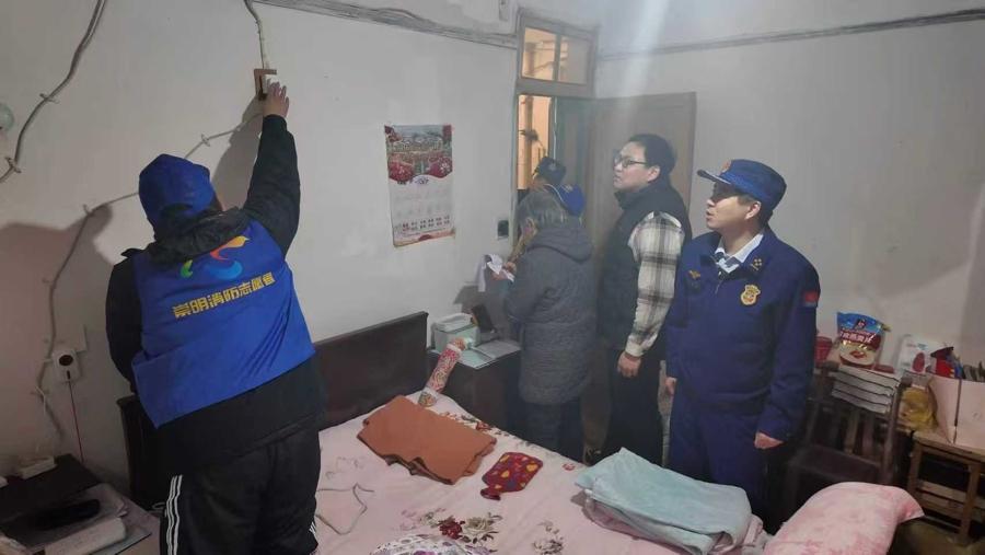 活動尾聲,消防員與志願者頂着寒意,端着剛熬製好的暖心粥,走進獨居老人、困難羣衆家中,送上節日問候與冬春防護關懷。“爺爺,煮飯時記得開窗通風,出門前一定要關好電源、火源和燃氣閥。”每到一戶,工作人員都耐心宣講“三清三關”消防安全知識,重點叮囑冬春居家防護要點,並仔細檢查家中電器線路、燃氣設施,協助清理竈臺油污與室內易燃雜物,同時排查清理樓道及消防通道的雜物堆積問題,確保生命通道暢通無阻。