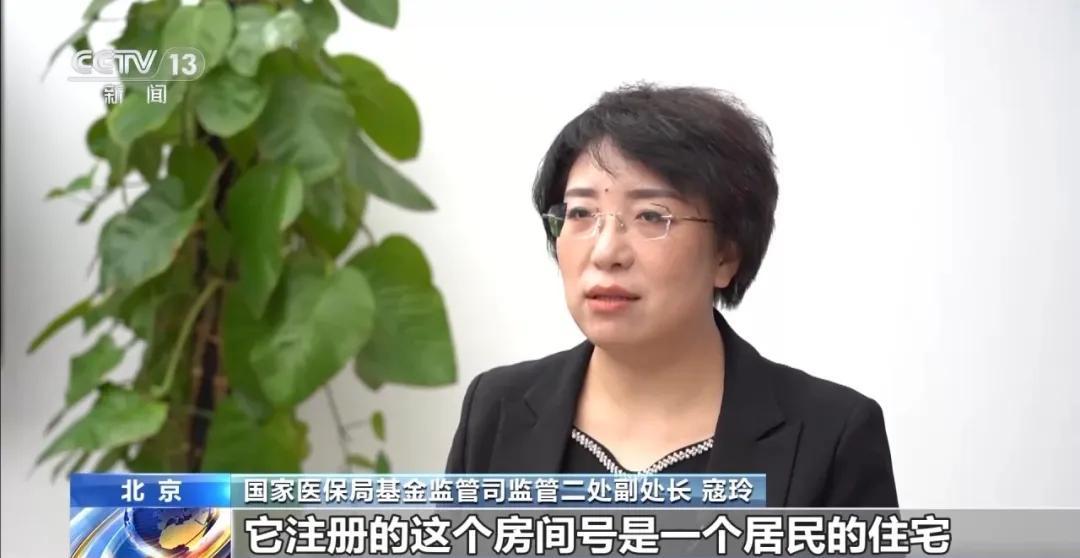 國家醫保局基金監管司監管二處副處長 寇玲:這家公司的註冊地是在一個居民住宅區內,他註冊的房間是一個居民的住宅,沒有任何企業經營的狀態。房主對這家公司是毫不知情的,對公司的實控人,法人也都不認識,檢查組也到物業和街道辦進行了調查,發現根本沒有這家公司存在過。
