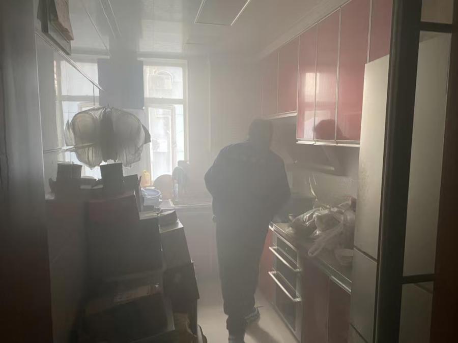 近日,在金山區石化街道臨蒙居民區,正在單元樓外施工的物業工作人員曾玉林,率先捕捉到了這危險的氣味。他立刻停下手中的活,逐層排查,最終鎖定一戶人家。敲門無人應答,焦味卻越來越濃。時間緊迫,曾玉林迅速上報,社區居委會、物業與轄區民警的應急響應機制隨即啓動。在緊急聯繫業主並獲得同意後,專業開鎖人員在多方見證下打開房門。濃煙撲面而來,廚房竈臺上的鍋已被燒得漆黑,周圍還堆着易燃物。民警果斷關閉燃氣,曾玉林開窗通風,社區人員檢查設施……一場潛在的火災在“社區+物業+民警”的高效協同下被悄然化解。事後,清理現場、向業主詳細說明、反覆叮囑安全,一系列動作細緻而周全。