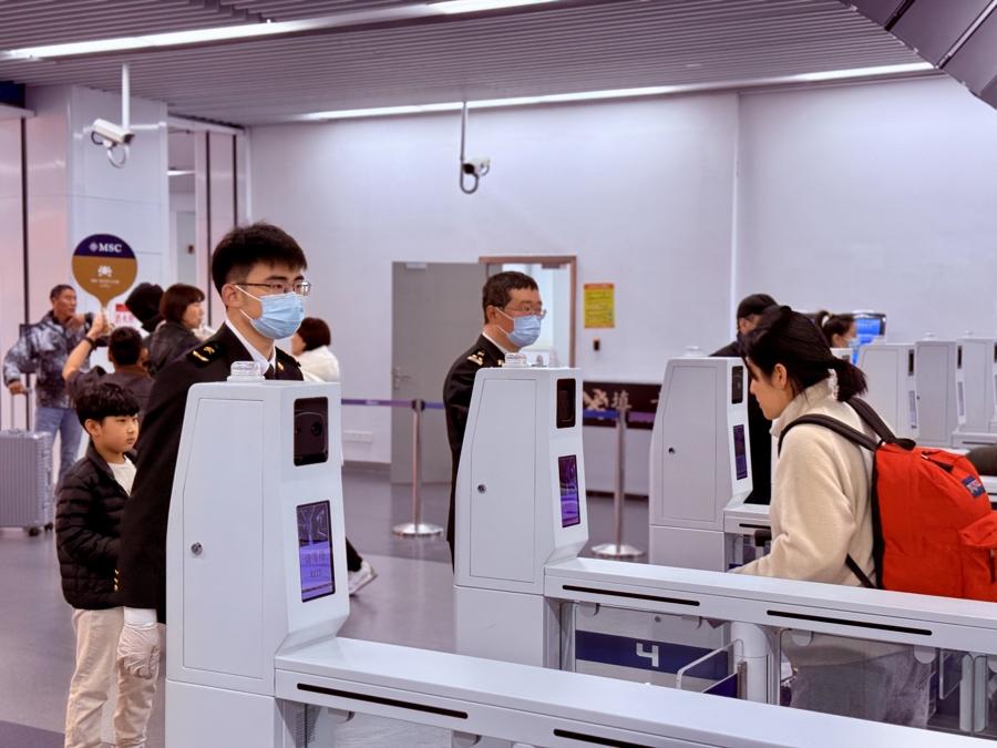 近日,上海吳淞口國際郵輪港迎來2026年首個兩船同靠:“愛達·魔都號”和“地中海榮耀號”兩艘大型郵輪相繼靠泊,正式開啓本航季的上海母港之旅。當日,寶山海關共監管出入境旅客1.1萬人,其中來自英、美、韓等外籍旅客佔比超過3成。