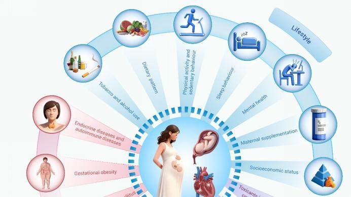 不良生活方式、心理狀態及社會環境,同樣在胎兒心血管發育過程中扮演着重要角色。吸菸、飲酒、高糖高脂飲食、缺乏運動、久坐等不良生活習慣的危害已廣爲人知,而孕期睡眠不足、抑鬱或焦慮等心理問題,也被證實會通過神經內分泌途徑,影響胎兒的自主神經調節與血壓控制系統。