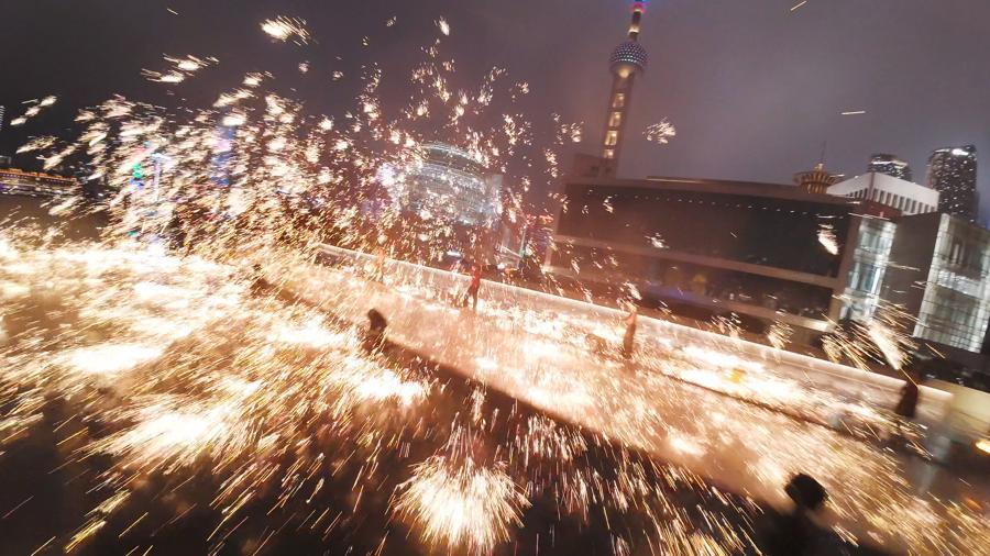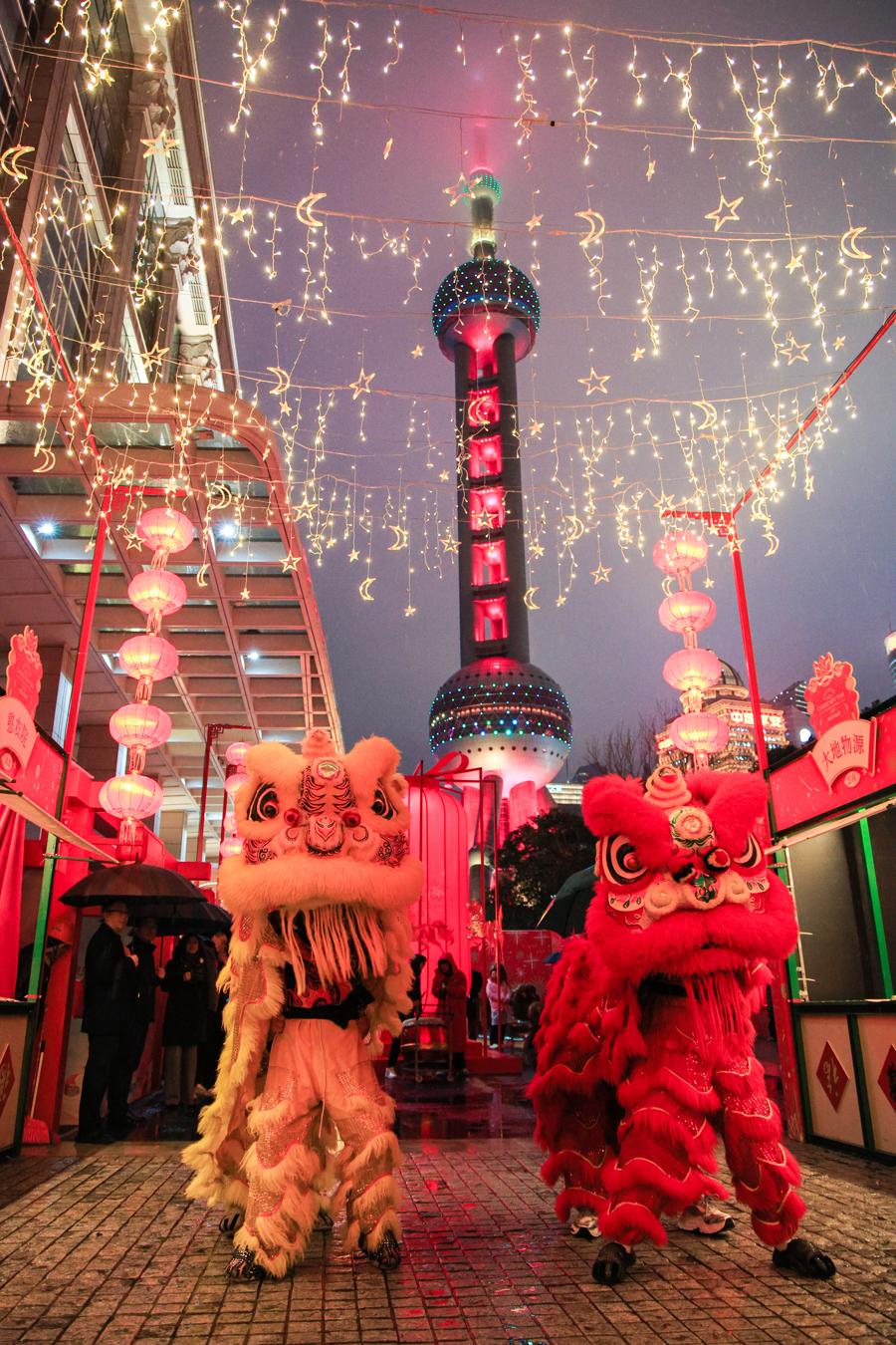 在陸家嘴的摩天大廈之間,滿眼中國紅正讓喜慶的節日氛圍撲面而來;緊鄰東岸濱江的舞臺上,重慶打鐵花、廣東醒獅、潮汕英歌舞等非遺展演熱鬧不斷,一旁還有彙集經典上海味道和各地特色年菜的“年味長街”,地地道道的年味滿溢……