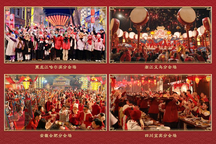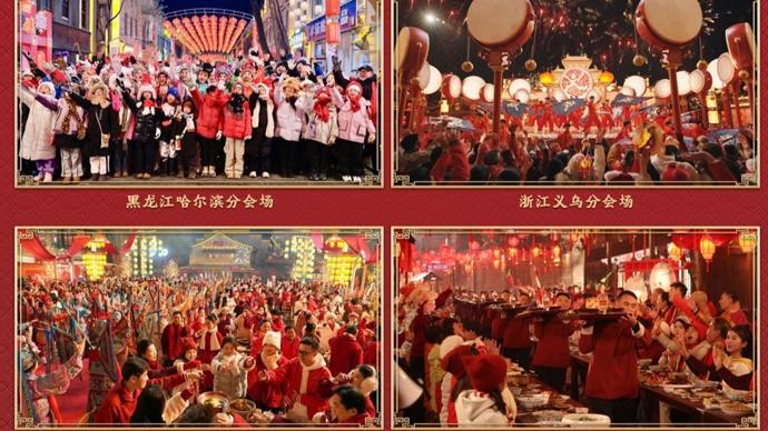 四地分會場各具風韻,從冰天雪地到長江之濱,從科創沃土到商貿新城,在新大衆文藝的創新創造裏展現各地年景。哈爾濱分會場融合表演唱、交響樂、芭蕾舞等表演形式,以故事化表達串聯起城市地標,帶觀衆沉浸式感受“東北老鐵”的熱情豪爽,傳遞“冰雪暖世界”的獨特魅力。義烏分會場在全球數貿中心設立主舞臺,表演融入撥浪鼓、婺劇、迎龍燈等地方元素;在熱情四溢的歌舞中,中外文化相匯交融,四海暢聯、八方通達的氣象撲面而來。合肥分會場的水墨舞蹈、黃梅戲等接連登場,映照出徽風皖韻的風情;在主舞臺駱崗公園上空,低空飛行器列陣翻飛,碰撞出科技與人文的璀璨火花。宜賓分會場以“萬里長江第一城”的浩蕩江景爲幕,民俗活動“請春酒”貫穿全場,三江六岸歡歌笑語,家人圍坐、燃面飄香、喜樂滿堂。