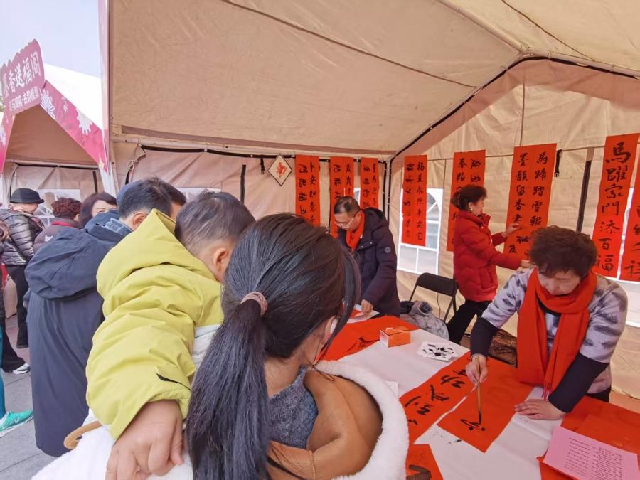 寫春聯送福字,現場迎新氛圍濃厚。文匯報記者 單穎文攝