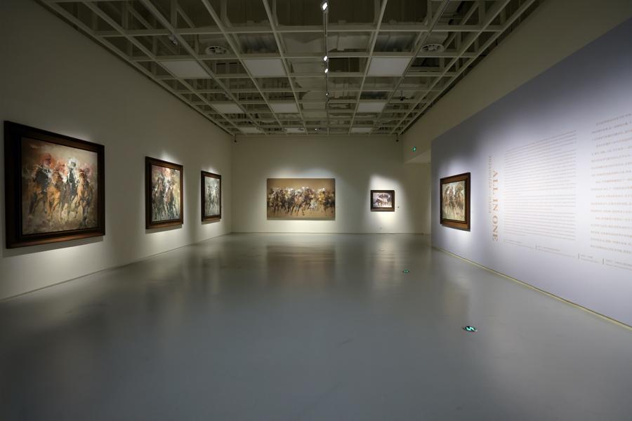 奔騰的萬馬構成“勢之形馳”單元,聚焦馬匹動起來的生命本然狀態。畫布上馬的形象超越形體,成爲宇宙“逸氣”的可見顯形。