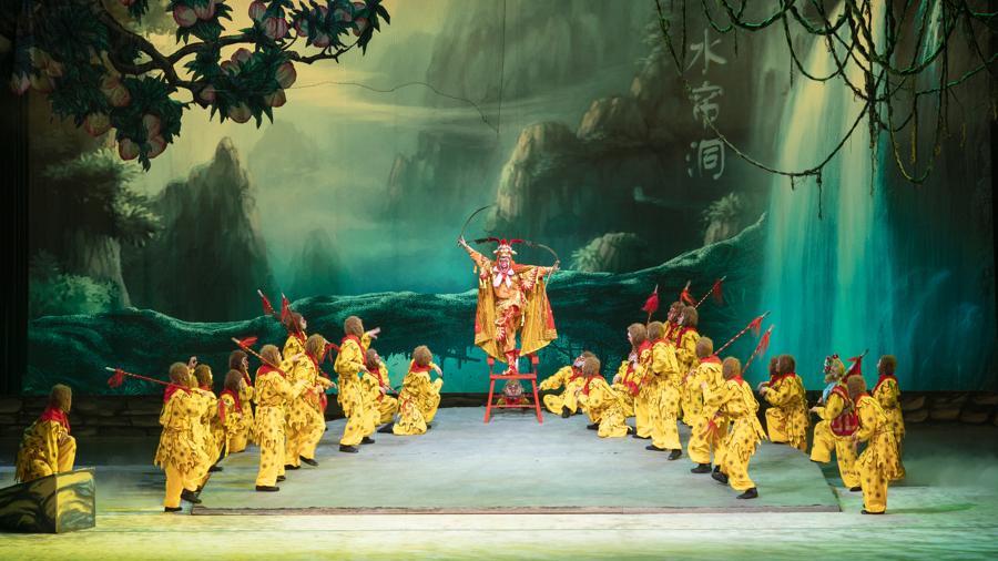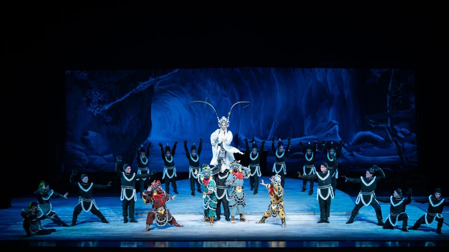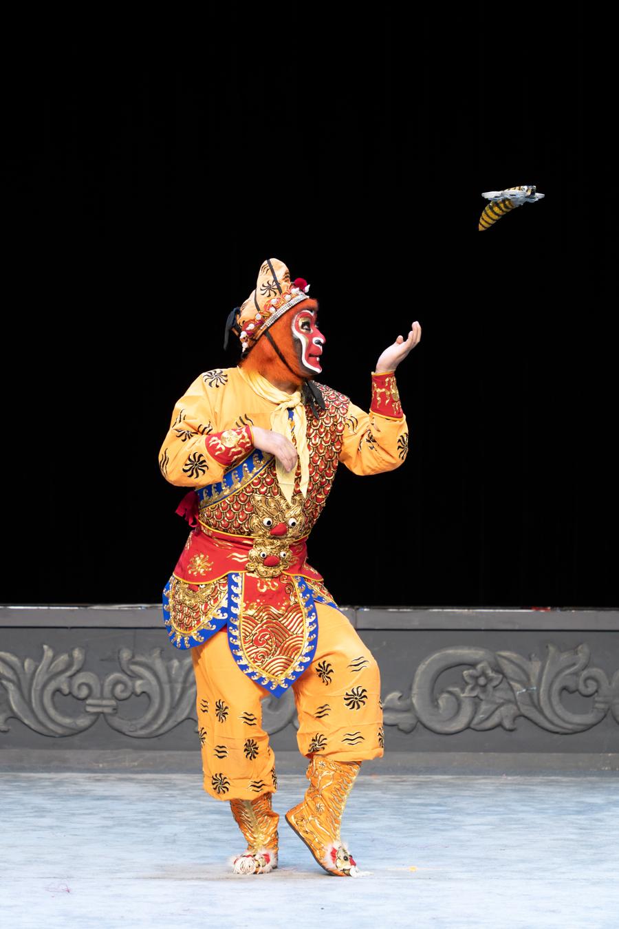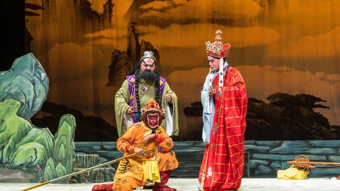 由機器狗扮演的妖怪突然現身,倒立着喊“小妖們,巡山啦”,惹得觀衆捧腹大笑;當金蟾大仙受邀品嚐唐僧肉時,由無人機扮演的“小蜜蜂”飛出舞臺,在劇院上空盤旋……1月31日-2月1日,浙江中月婺劇團在上海美琪大戲院上演新概念婺劇《孫悟空三打白骨精》。這臺突破傳統的演出將前沿科技與婺劇藝術融合,用機器狗、無人機、裸眼3D技術刷新觀衆對傳統戲曲的印象。
