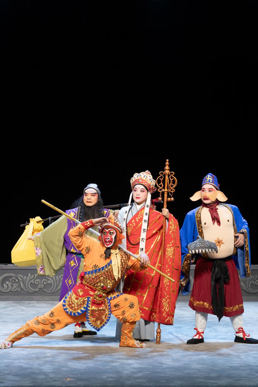 作爲劇團最具代表性的保留劇目,《孫悟空三打白骨精》的演變歷程堪稱一部傳統戲劇煥發新生的微觀“創新手冊”。2021年,該劇首演即獲市場熱烈反響,劇團持續爲其注入創新基因。2024年,一次大膽嘗試引發全國關注:在劇目《虹橋贈珠》中引入“機器狗”飾演“哮天犬”,相關視頻在短視頻平臺獲得近百萬點贊,實現傳統戲曲的“破圈”傳播。同年年底,融合“變臉變裝”等技術的升級版《孫悟空三打白骨精》成功在上海演出。
