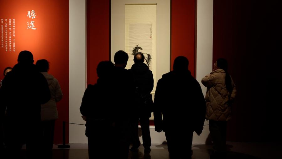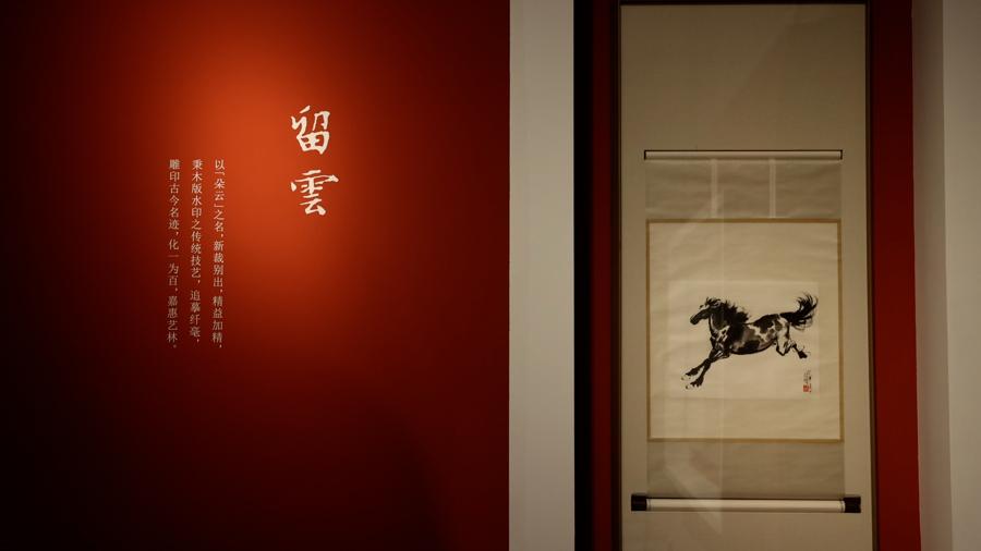 展覽現場,以畫壇巨匠徐悲鴻名爲“淵渟”“瞻途”“馳遠”的三幅精品奔馬圖原作,以及朵雲軒木版水印徐悲鴻奔馬圖“留雲”作爲各板塊的開篇主旨,姿態昂揚,寓意非凡。談及這次展覽及主視覺的開篇展品,浦東新區區委常委、宣傳部部長黃瑋表示:“此次朵雲軒落地浦東新區在上海美術館舉辦‘雲藏千年’大展,面向公衆大規模展示其庫藏珍品,意義特殊。尤其是這組開篇作品,以奔馬精神爲寓意,在‘十五五’開局之年,作品中激昂奮鬥、不斷開拓的藝術感染力,相信會給社會各界人士留下最深刻的觀展體驗。”