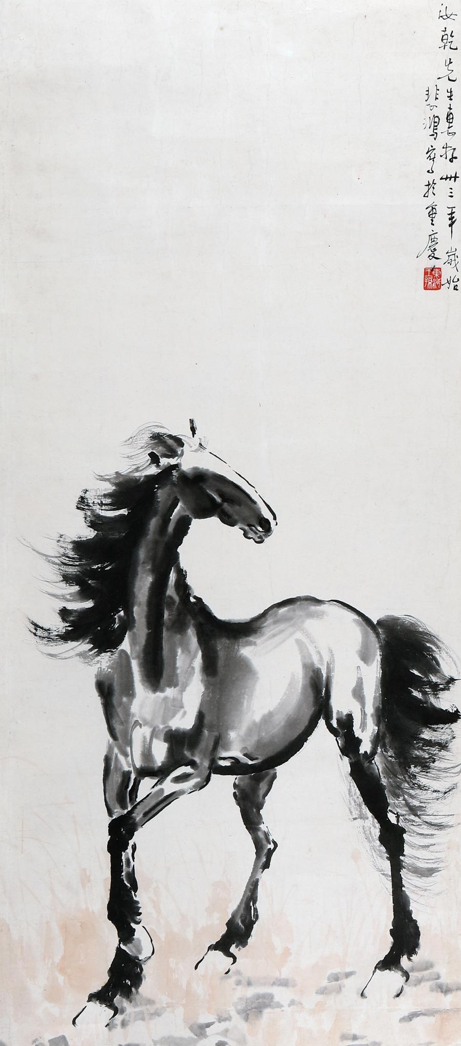 “丹青書畫”系列中,宋人精品冊頁古雅韻致,作爲藝術品企業,朵雲軒所藏的這套宋人精品冊頁稀缺性突出;珍藏王鐸巨幅對聯,雄強筆勢,以“漲墨法”與“欹側佈局”營造出強烈視覺張力;張大千人物畫《番女掣厖圖》神形兼備,盡顯線條流轉之美,素有“海內第一無上精品”的美譽;徐悲鴻筆下的戰馬更是將愛國情懷熔鑄筆墨,“戰馬嘶鳴”的鏗鏘氣魄交相輝映;更有諸多名家代表作集中展示,每一件都堪稱藝術殿堂的明珠。“金石文玩”系列的明代巨匠楊玉璇制田黃羅漢溫潤瑩澤,缶翁吳昌碩的詩書畫印珠聯璧合,將金石之氣與文人意趣完美融合,見證着傳統藝術的匠心傳承。“妙出梨棗”系列則聚焦國家級非物質文化遺產朵雲軒木版水印,從勾描、刻版到水印的全流程技藝結晶,再現“下真跡一等”的藝術魅力。