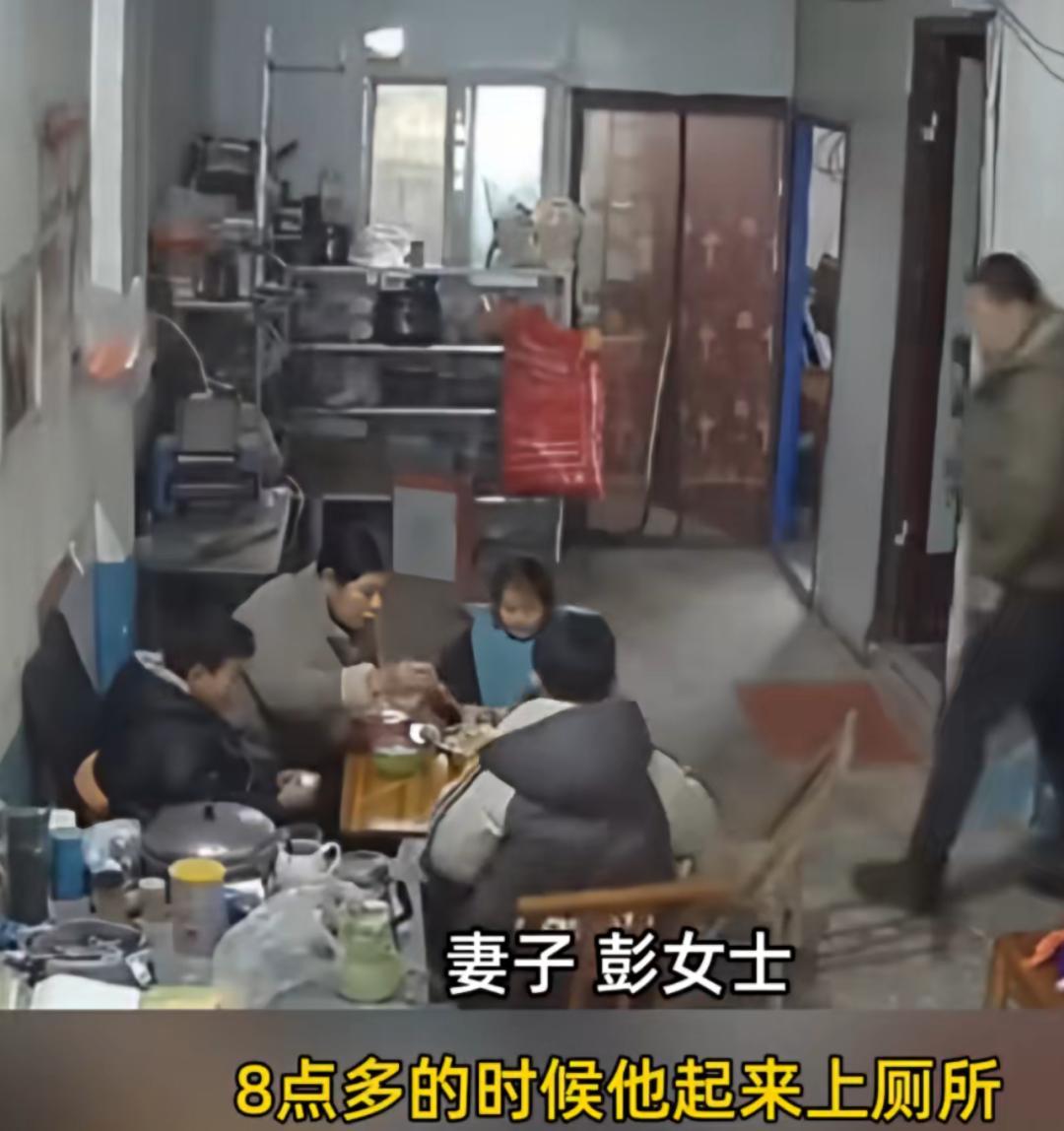彭女士回憶說,事情發生在早上8點左右,當時自己和孩子正在喫飯,突然聽到丈夫倒地的聲音。