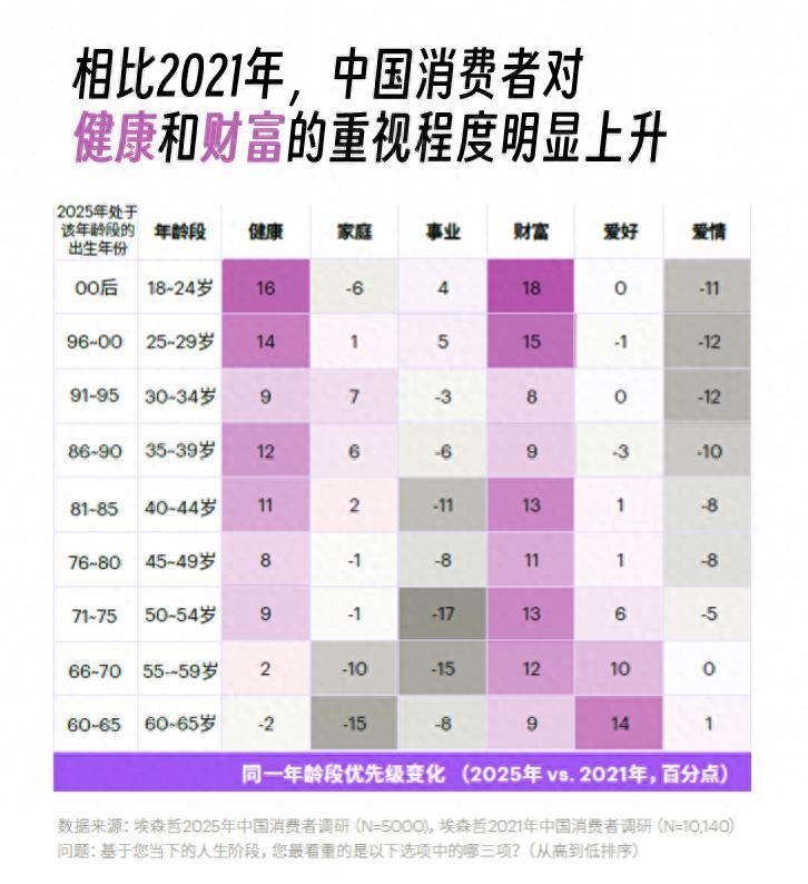 這種對時代情緒的判斷在數據中得到了驗證:埃森哲在《中國消費洞察報告》中指出,中國消費者對“健康”和“財富”的重視相較2021年大幅提升,人們對美好生活有了新的主張。