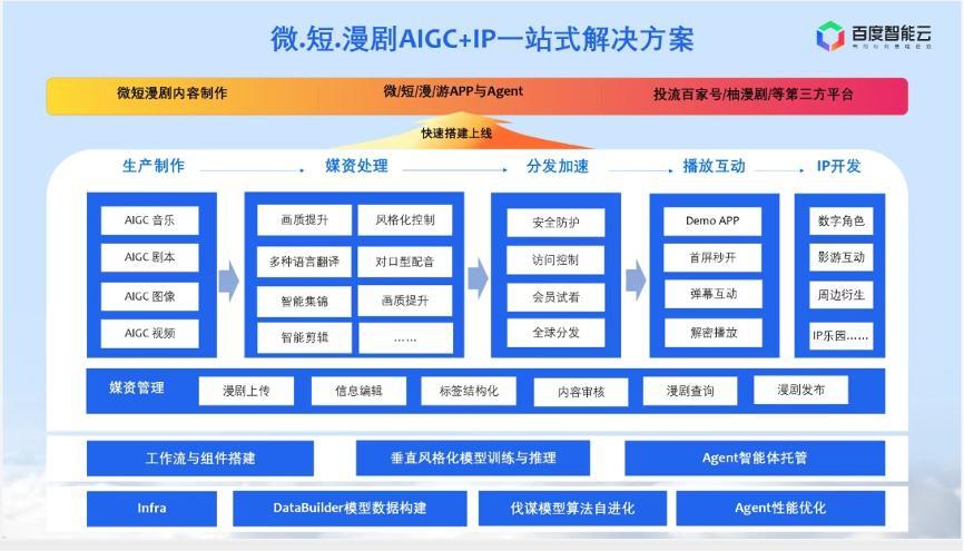 記者呼吸,百度智能雲此次發佈的AI漫劇行業解決方案,聚焦“從創意到成片”的全鏈路能力整合,覆蓋劇本生成、分鏡拆解、角色與場景設定、畫面生成、動態演繹、配音配樂及內容管理等核心環節。通過模型能力與行業工具鏈的結合,原本高度依賴人工分工的製作流程正在被拆解和重組,使創作團隊能夠以更輕量的方式完成高頻內容生產。