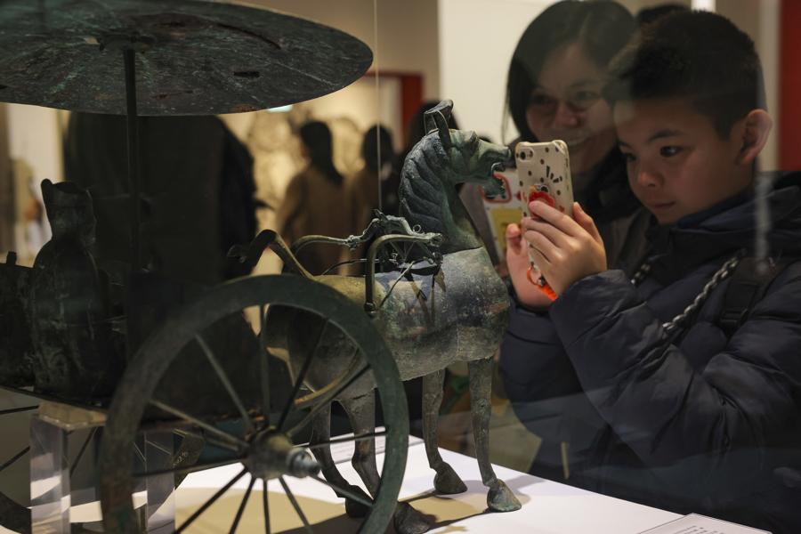 邂逅與“馬踏飛燕”同出於武威雷臺漢墓的青銅車馬,感受漢代車騎儀仗的赫赫威儀;近觀出自吐谷渾墓葬的唐代騎馬擊鼓俑,領略絲路往來的文化交融……