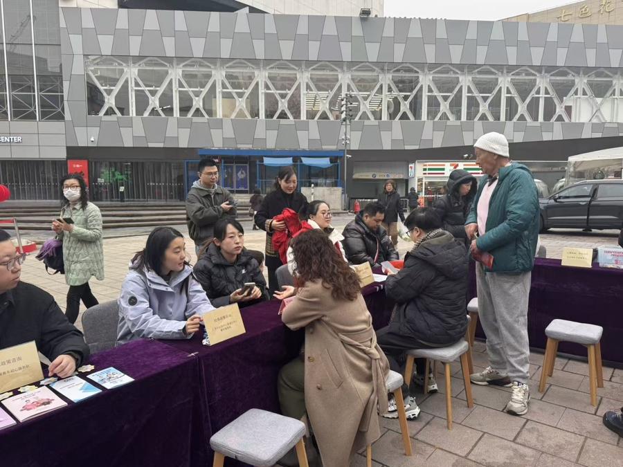 清晨的漁陽裏廣場,寒風微冷,但“學雷鋒爲民服務活動”的攤位中卻暖意融融。政策諮詢、首飾清洗、健康測量、法律諮詢、廢舊充電寶回收……志願者們忙碌的身影爲2026年的農曆春節前奏增添了一抹亮色。