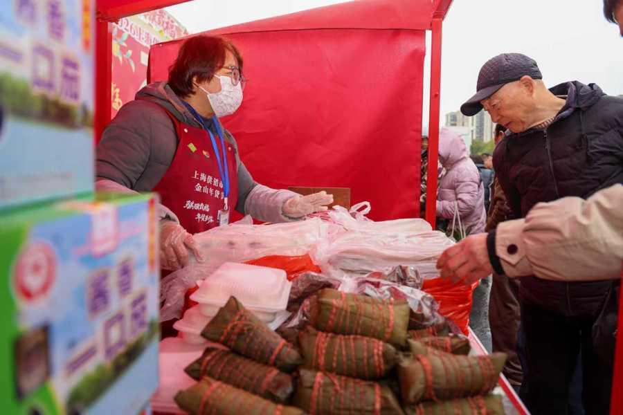新鮮出爐的蟹殼黃香氣四溢,軟糯清甜的平湖尺糕引人駐足,料足味美的新疆乾果大列巴、平湖尺糕讓人垂涎。在古松園食品等本土特色攤位前,八寶糕、老字號丁義興楓徑丁蹄等傳統年味尤其受到青睞。“這些都是老底子的味道,年夜飯上少不了。”一位正在選購的阿姨笑着說道。
