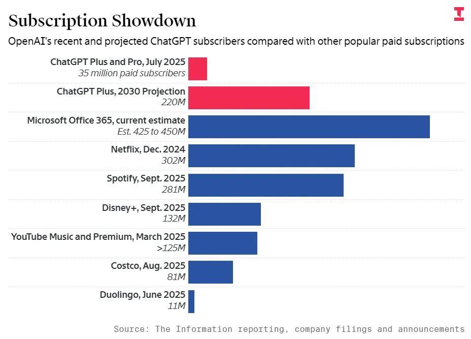 目前,ChatGPT的付費用戶規模佔比在5%。據《The Information》披露,OpenAI內部預測,到2030年付費訂閱用戶將至少達到2.2億人。