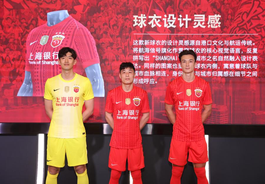 除了雙方正式簽約之外,本次活動還有一個重頭戲,那就是俱樂部2026賽季球衣展示。俱樂部球員代表武磊、顏駿凌和安永佳身着2026賽季全新主場戰袍登臺,展示了印有“上海銀行”標識的新賽季球衣。據悉,新賽季的球衣設計靈感源自港口文化與航運傳統,將航海信號旗圖案化作視覺語言,反覆拼寫出“SHANGHAI”字樣,象徵着球隊與城市血脈相連。活動中,上海海港足球俱樂部向上海銀行贈送了全體球員簽名的紀念球衣,寓意雙方團隊同心同行、攜手並進。