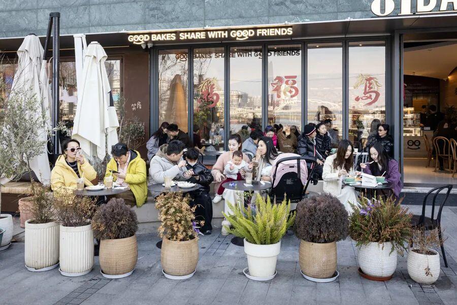 西岸夢中心濱水空間,咖啡香氣漫入江風,市民正享受午後閒暇
