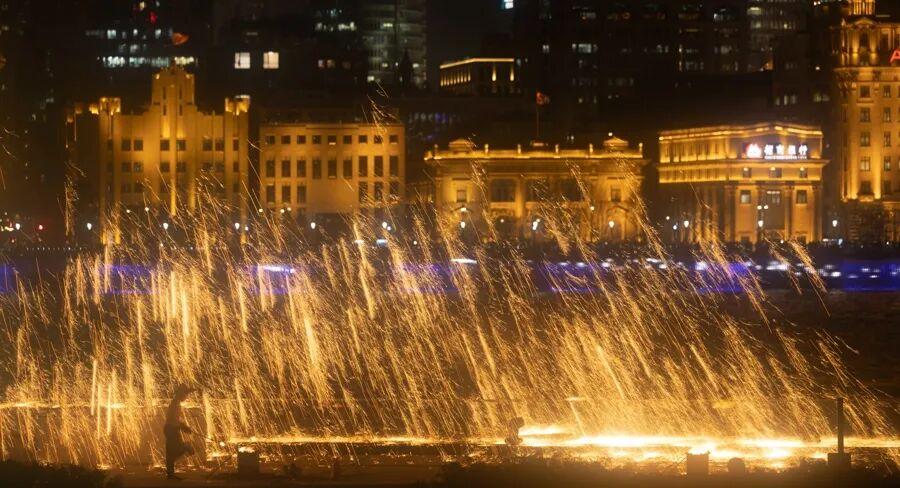 來自重慶銅梁的千年非遺“打鐵花”首次亮相上海城區