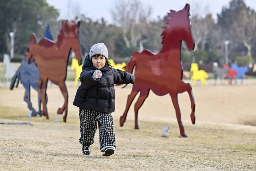 閔行文化公園內的“萬馬奔騰”雕塑成爲周邊市民日常休閒活動打卡地 攝影丨王竟成 陳彥鍇 范家樂 陳龍 袁婧