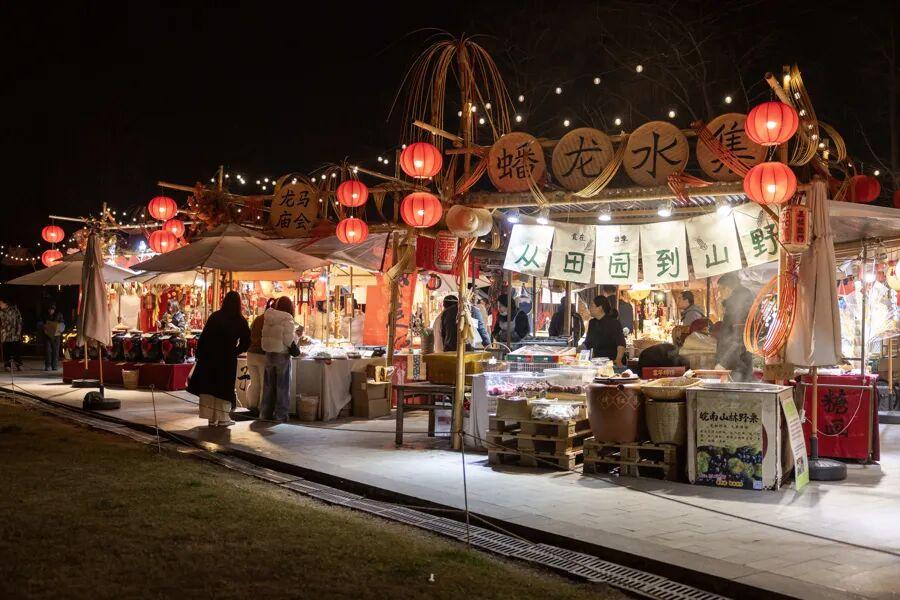 蟠龍新天地的蟠龍水集中,大紅燈籠高掛街巷,年味隨風漫開