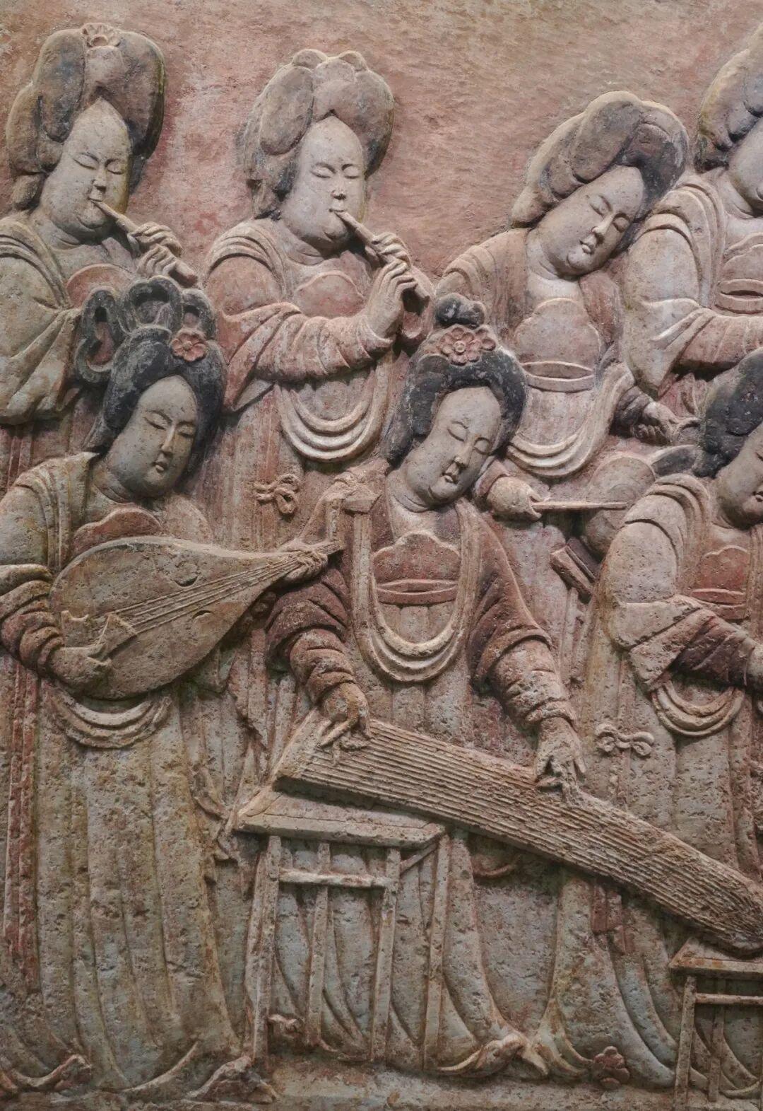 如果說南唐的人首蛇身俑是地下的幽吟,那麼河北曲陽出土的王處直墓彩繪散樂浮雕,則是一場被凝固在石頭上的豪奢輓歌,幾乎是五代北方藝術的一塊活化石。