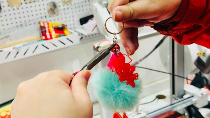 在“新年納吉·生肖迎福”體驗站,殘障人士選擇3D打印的生肖後,通過組裝、裝飾,製成生肖鑰匙扣。有的將其贈予父母,有的將此作爲自己的新春禮物,讓科技成爲傳遞親情與祝福的溫暖紐帶。