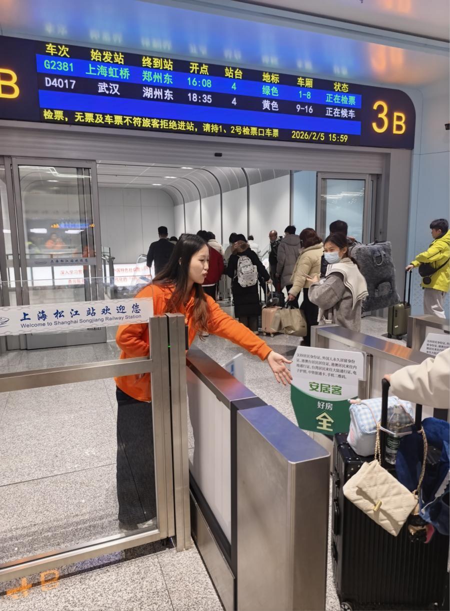 “小甜橙”的溫暖身影,不止步於春運服務期。從去年開始,團隊啓動常態化志願服務計劃:週末及清明、五一、國慶等人流高峯節假日,上海松江站總能看見那一抹溫暖的橙色。2026年春運結束後,數十名志願者還將於正月初五起繼續服務春運後期的返程客流,用實際行動詮釋“志願不打烊”。